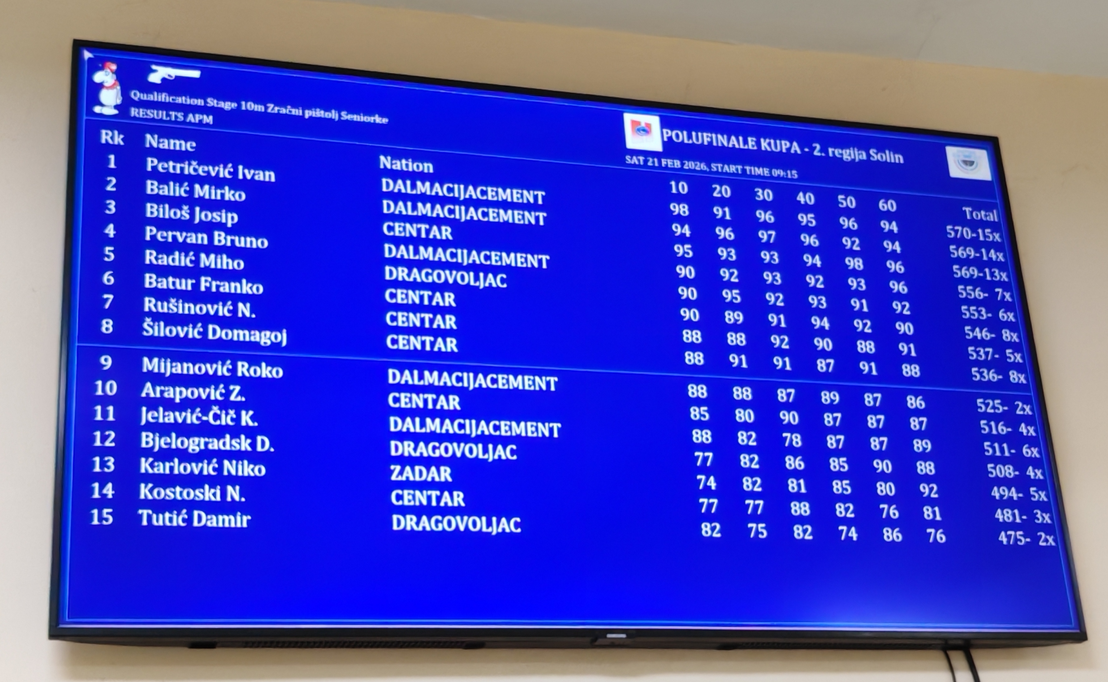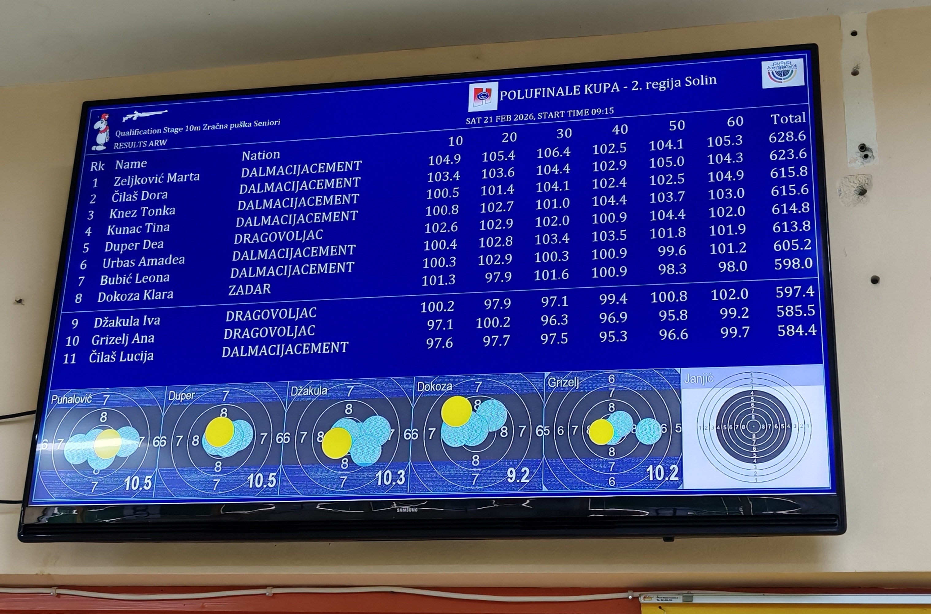 U subotu 21.02.2026.god. održano je polufinale "Kupa Hrvatske" u gađanju zračnim oružjem ISSF programa za 2 regiju u Solinu. U kategoriji zračna puška 10 m sudjelovale su Dea Duper (614.8), Iva Džakula (597.4) i Ana Grizelj (585.5). U kategoriji zračni pištolj nastupili su Miho Radić (553), Dragan Bjelogradski (508) i Damir Tutić (475).